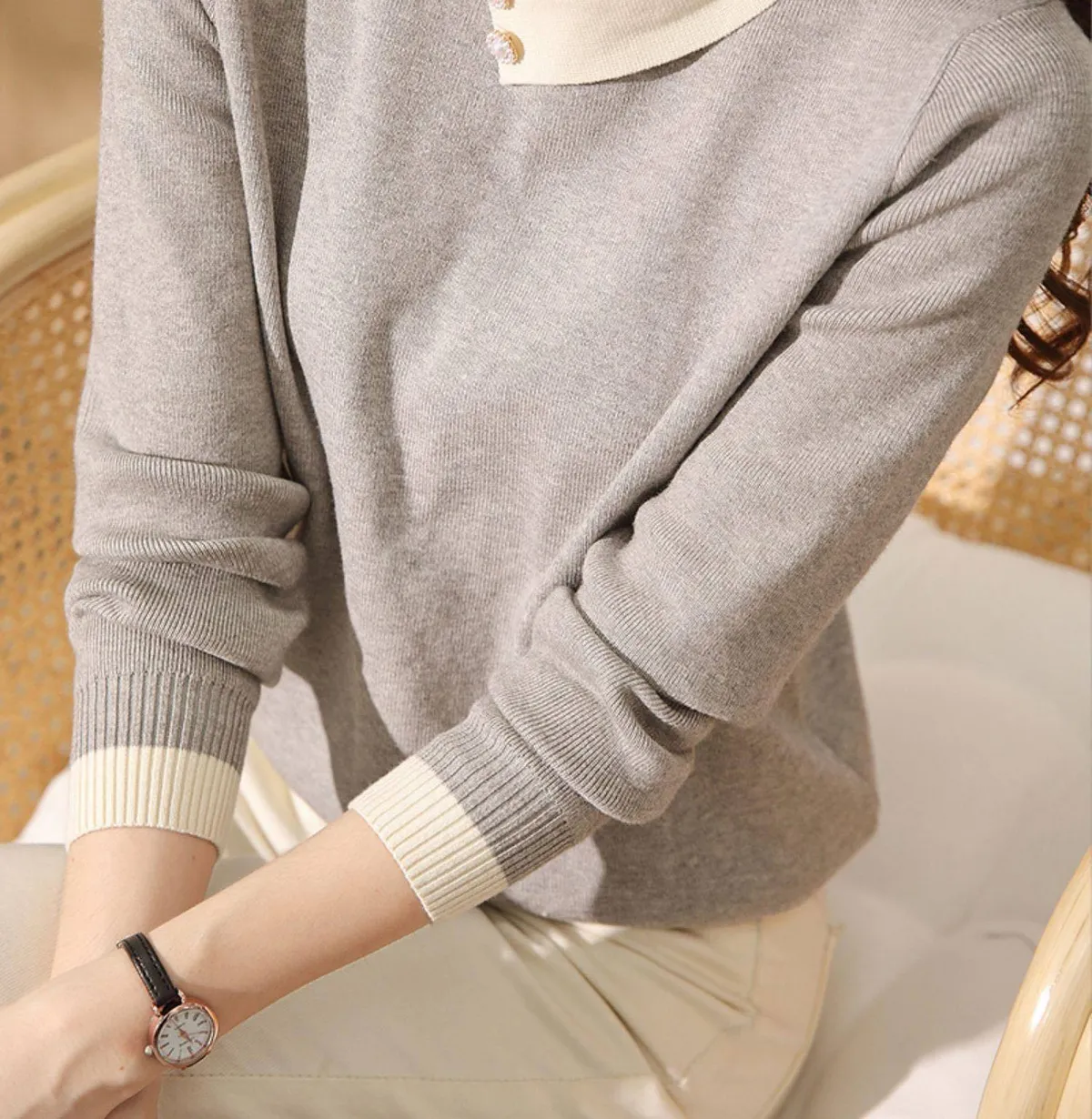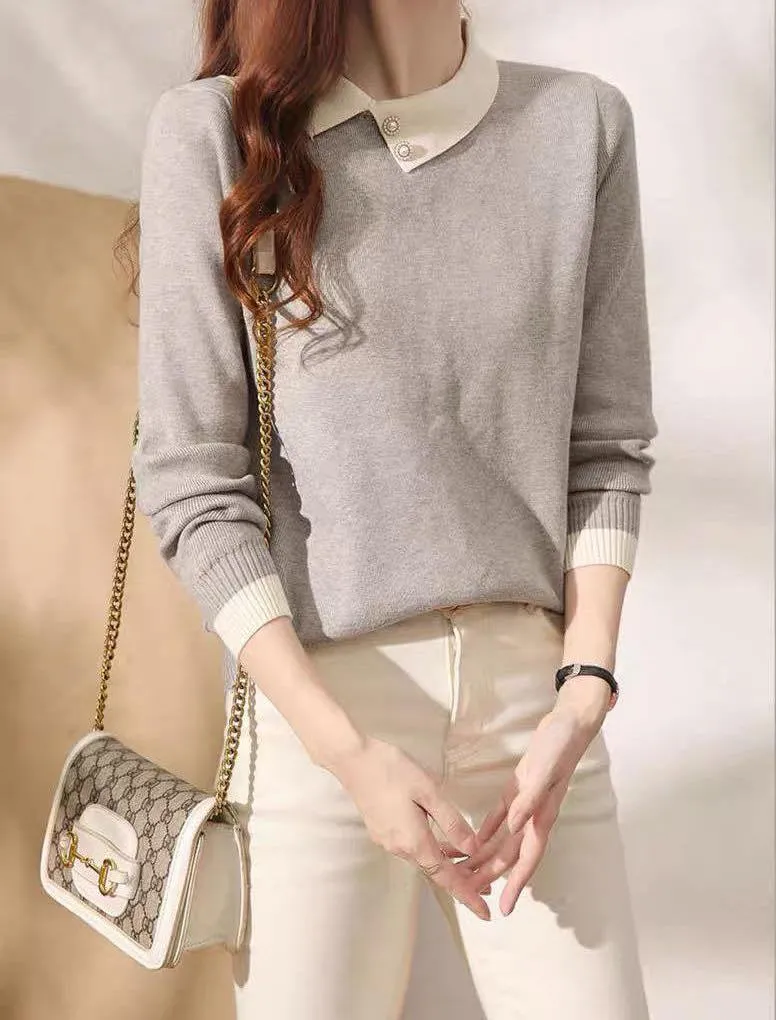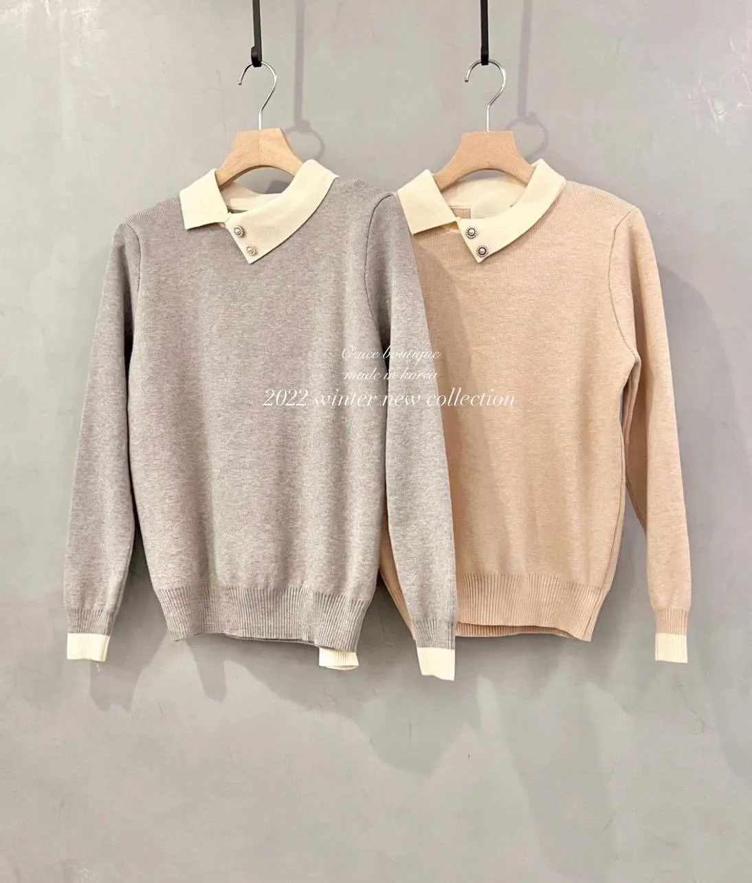 | 𝒜𝓊𝓉𝓊𝓂𝓃 & 𝒲𝒾𝓃𝓉𝑒𝓇 |𝑵𝒆𝒘 𝒃𝒆𝒂𝒖𝒊𝒇𝒖𝒍 𝒑𝒓𝒐𝒖𝒅𝒖𝒄𝒕 | 超級好看又氣質的一款針織衫舒服親膚材質完全不擔心刺癢讓人好感度提升的優雅款式白色衣領上有漂亮珍珠花釦點綴喜歡這樣溫柔又有日系風味的穿搭