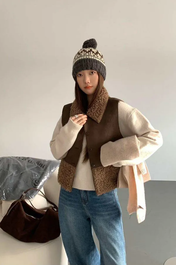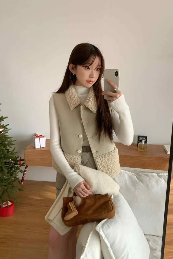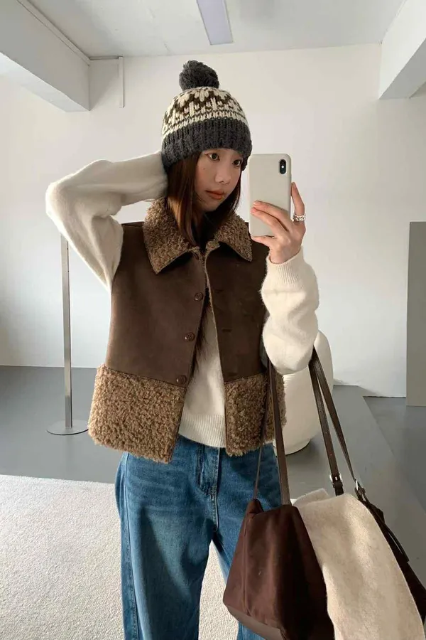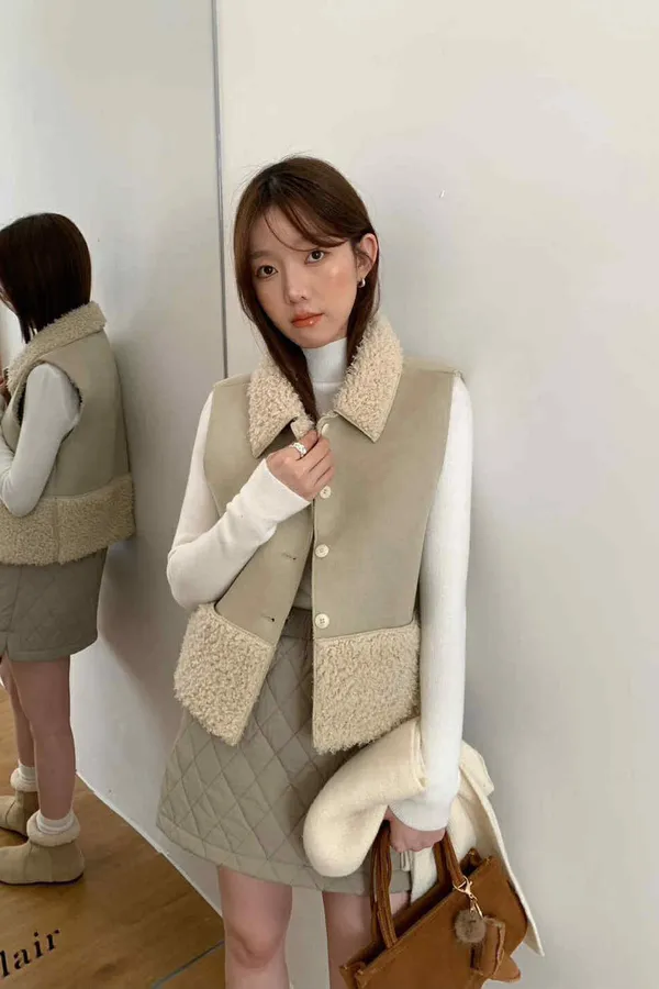 冬日愛斯基摩QQ羔羊毛領背心