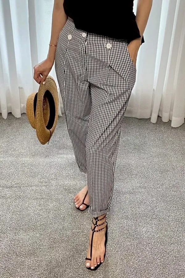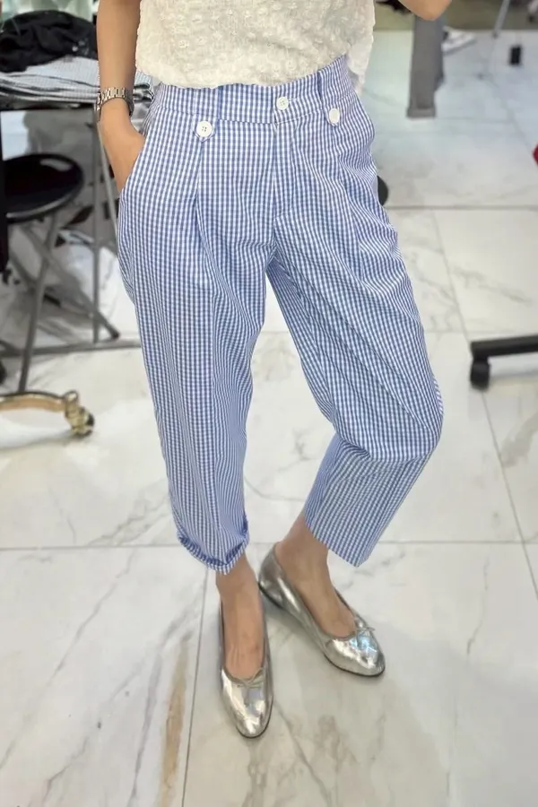 法式小餅乾格紋褲