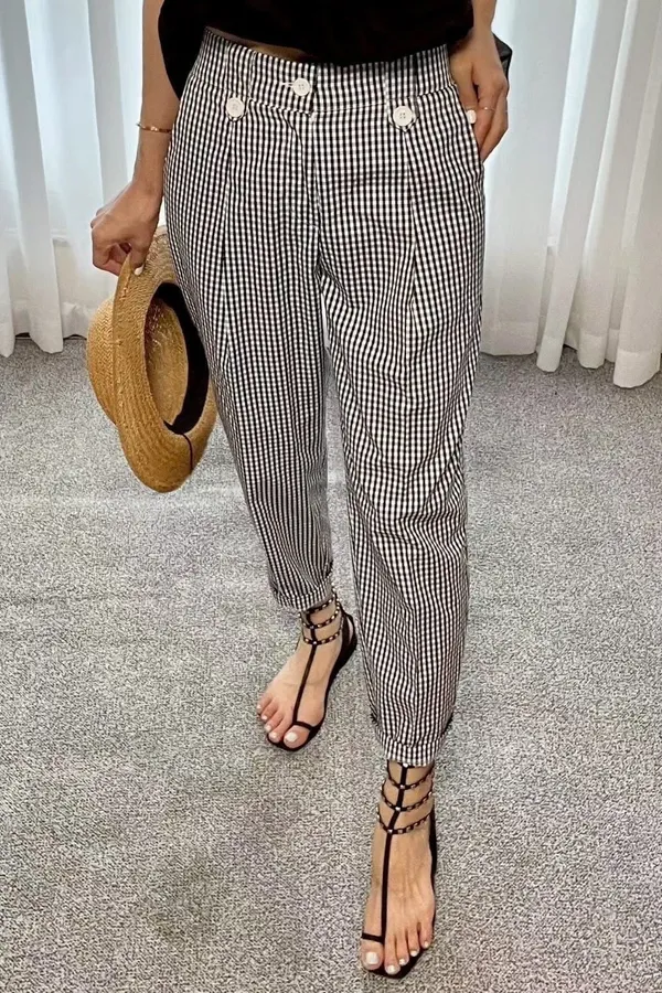 法式感小餅乾格紋褲