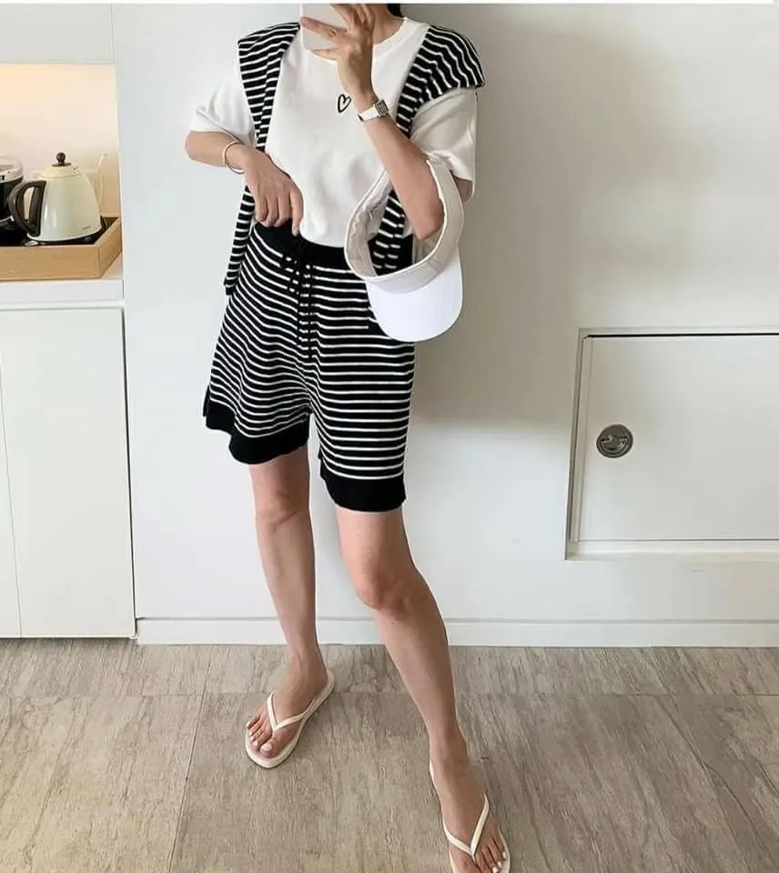 | 𝑺𝒑𝒓𝒊𝒏𝒈 & 𝑺𝒖𝒎𝒎𝒆𝒓 |𝑵𝒆𝒘 𝒃𝒆𝒂𝒖𝒊𝒇𝒖𝒍 𝒑𝒓𝒐𝒖𝒅𝒖𝒄𝒕 |三件套的划算組合也是很大推 上衣+披巾+短褲(CP值破表)三件都可以拆開穿搭搭配耶 薄針材質不怕悶休閒居家都適合 在家也是要穿美穿舒適呀 經典橫條就是耐看不退燒