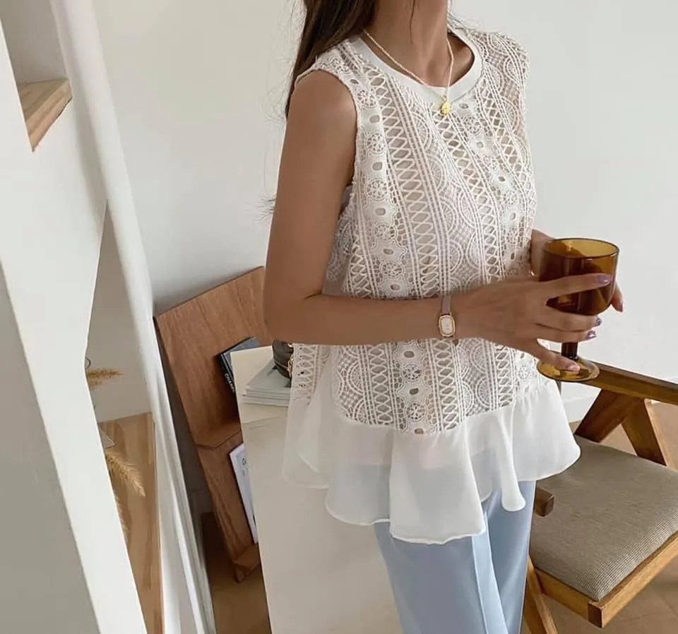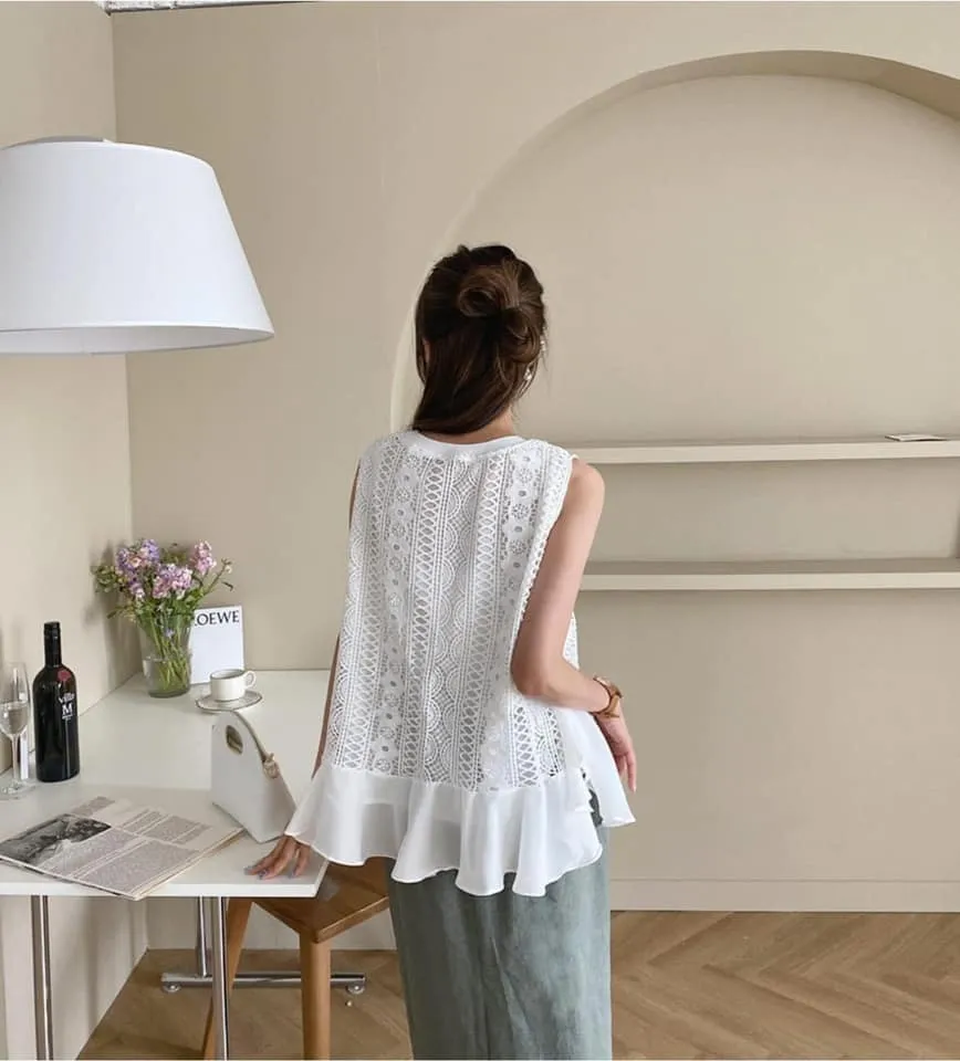 | 𝑺𝒑𝒓𝒊𝒏𝒈 & 𝑺𝒖𝒎𝒎𝒆𝒓 |𝑵𝒆𝒘 𝒃𝒆𝒂𝒖𝒊𝒇𝒖𝒍 𝒑𝒓𝒐𝒖𝒅𝒖𝒄𝒕 | 法式緹花布拼接雪紡下擺精緻又甜美女孩Style有貼心的內裡設計不用擔心透明曝光背心做寬邊設計可包覆副乳肉肉限時優惠SALE: 980