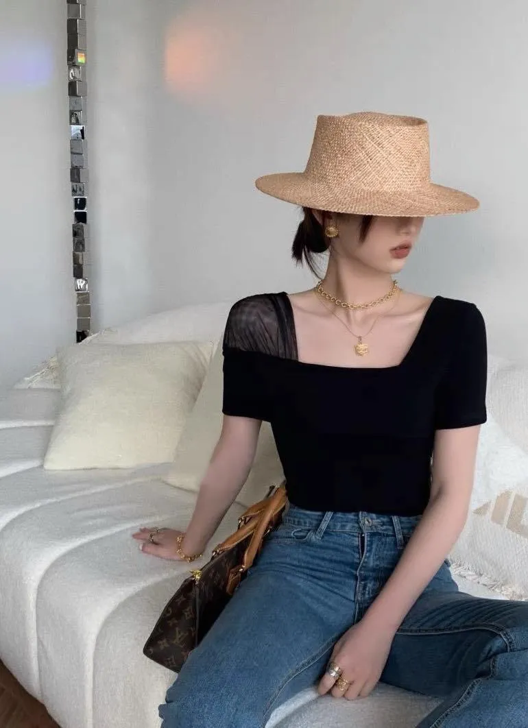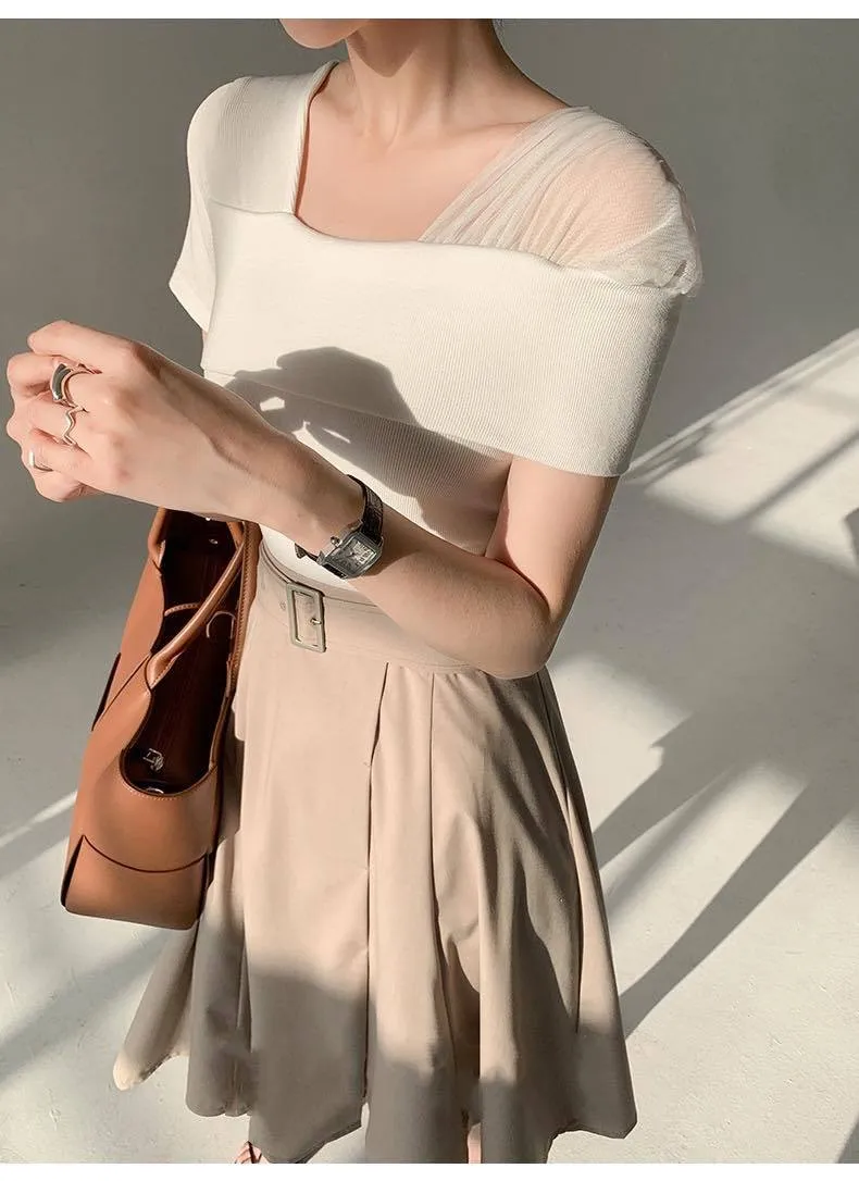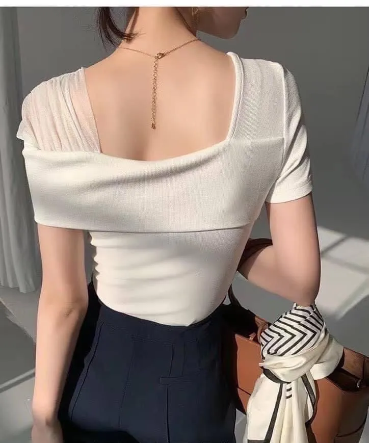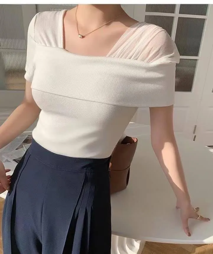 時髦單肩紗質針織衫 (限時優惠SALE)