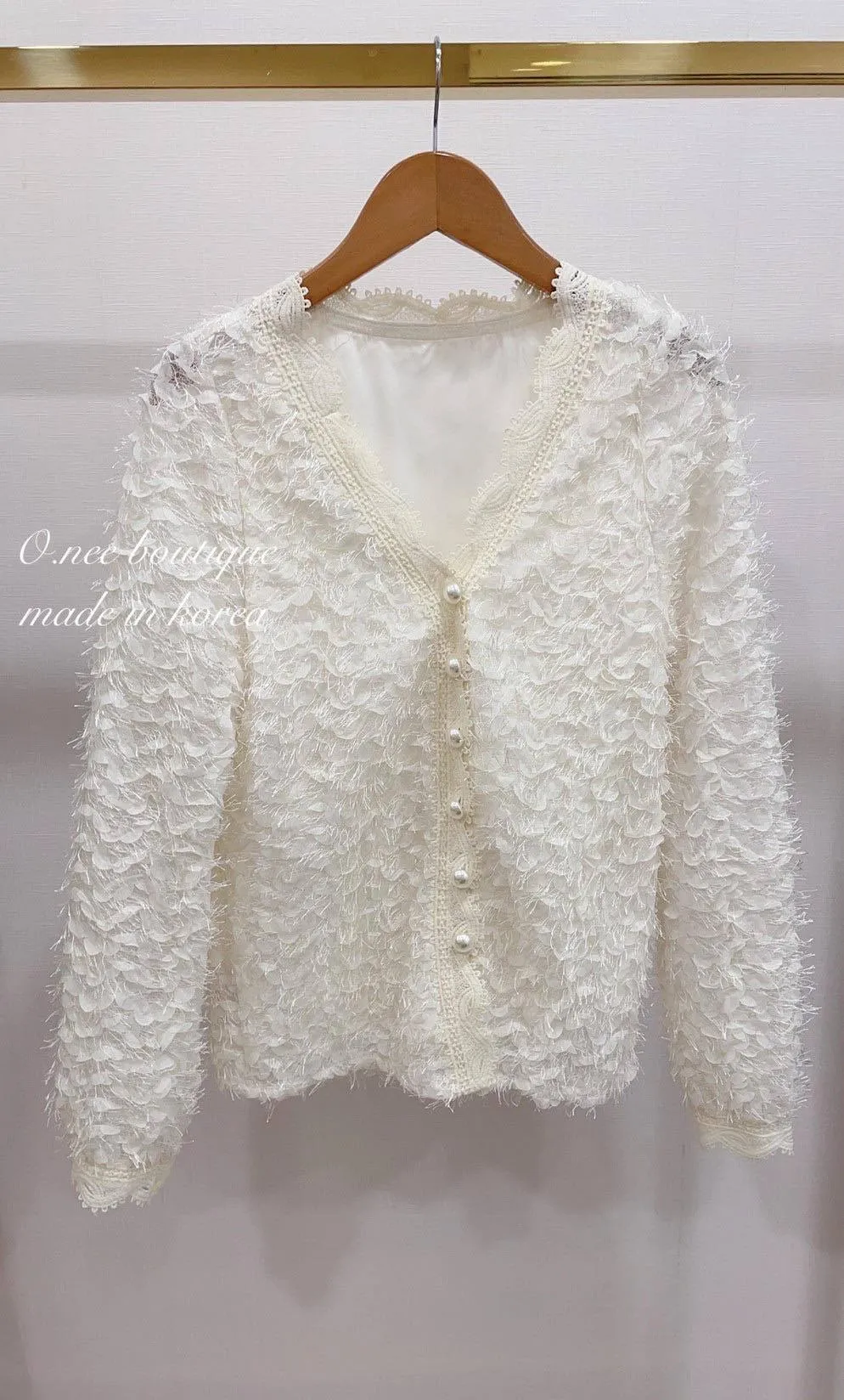 | 𝑺𝒑𝒓𝒊𝒏𝒈 & 𝑺𝒖𝒎𝒎𝒆𝒓 |𝑵𝒆𝒘 𝒃𝒆𝒂𝒖𝒊𝒇𝒖𝒍 𝒑𝒓𝒐𝒖𝒅𝒖𝒄𝒕 | 浪漫迷人又不失溫柔優雅滿滿細緻柔軟花瓣和雕花蕾絲點綴單穿一件絕對是目光焦點無法忽視的低調華麗好品味 一件兩種穿法的單品 CP值高 當外套或扣起來當上衣都很迷人
