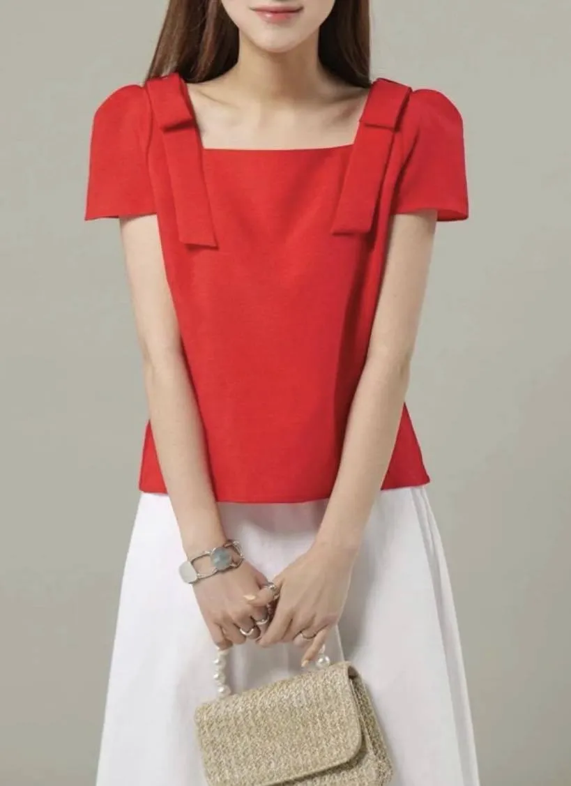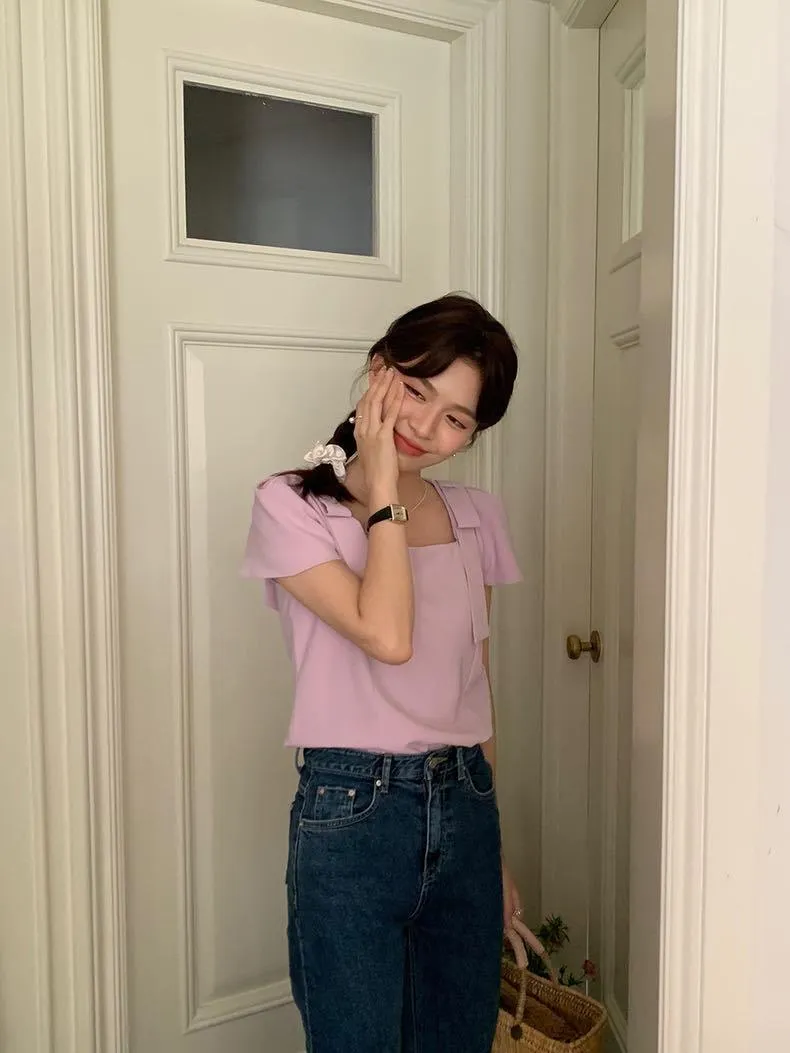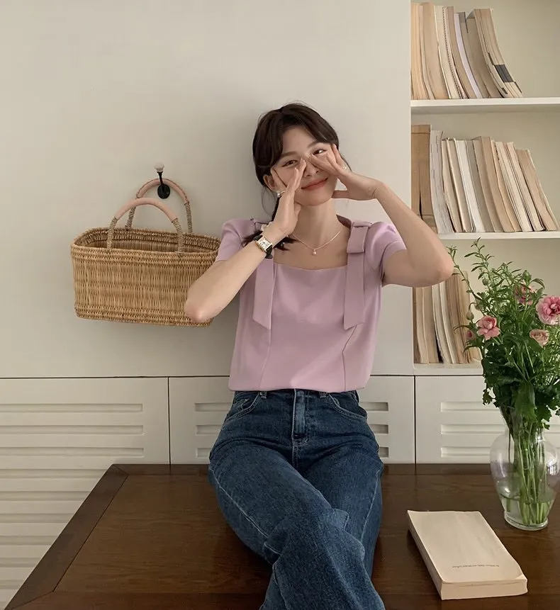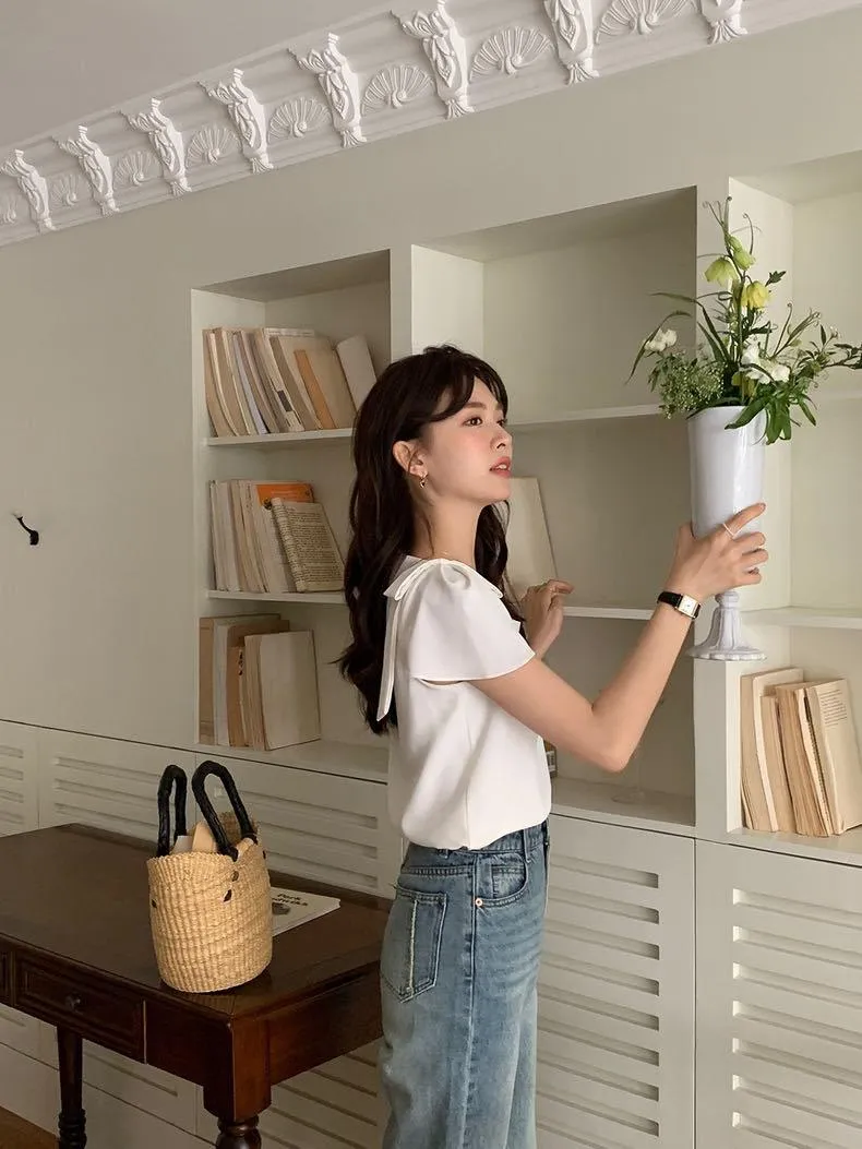 清秀佳人蝴蝶結棉紗上衣